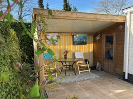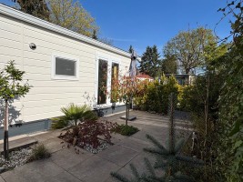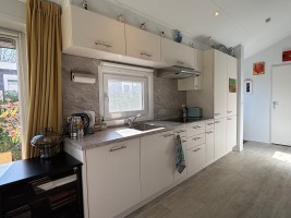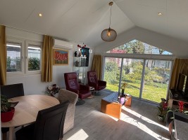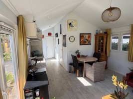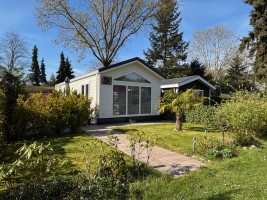 Prachtig onderhouden Hoeré chalet (11x4) met veranda op jaarplaats A100