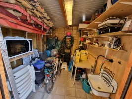Alle ramen- en deuren zijn in kunststof uitgevoerd met isolatieglas en horren. Het gevelmateriaal is van onderhoudsvriendelijk kunststof. Het terras en de verharding is voorzien van tegelwerk, de kavel is zonnig op het zuidoosten gelegen. De schuur (3m x 2m) biedt voldoende bergruimte, wasbak & wasmachineaansluiting is aanwezig. De veranda heeft een afmeting van 2.5m x 2 m.